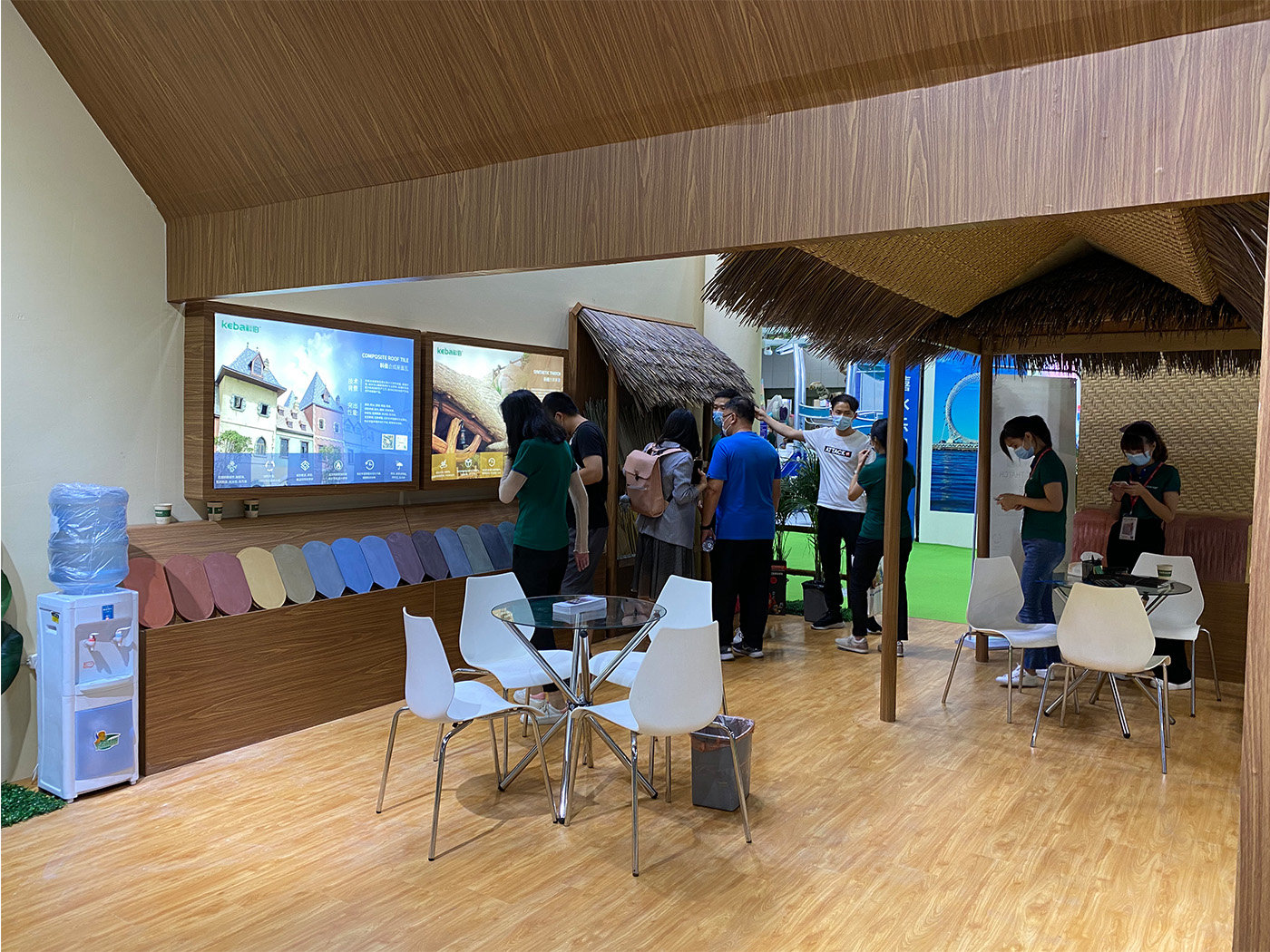 ? ? ? ? 在2020年廣州亞洲樂園及景點博覽會開展以來,我們秉承客戶至上的原則,一切以站在客戶的角度去理解,感受,服務等,為了客戶能夠更好的了解到合成屋面瓦、仿真茅草、青磚青瓦等產(chǎn)品,深圳市科佰工貿(mào)有限公司在展會位準備了木屋,并在上面鋪設合成屋面瓦和仿真茅草亭子,以方便客戶更好理解,去真實體驗合成屋面瓦、仿真茅草、青磚青瓦等不同產(chǎn)品用于屋頂上的各種美觀效果;同樣準備的多種新款式合成屋面瓦、青磚青瓦、仿真茅草等產(chǎn)品也深受客戶的喜愛,充分體現(xiàn)客戶在展會上對我們產(chǎn)品的認可。