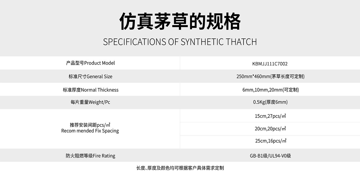 ? ? ? ? 仿真茅草是深圳市科佰工貿有限公司采用目前國際上先進的納米合成高分子材料技術和工藝生產。利用納米粒子的特有的物理化學性質,使得其具有更加優異的耐候性及阻燃性,能滿足美國ASTM-G154-06 抗UV老化測試標準,并能通過美標UL94-V0級阻燃,在國內仿真茅草也通過了國家防火建材阻燃測試B1級。?